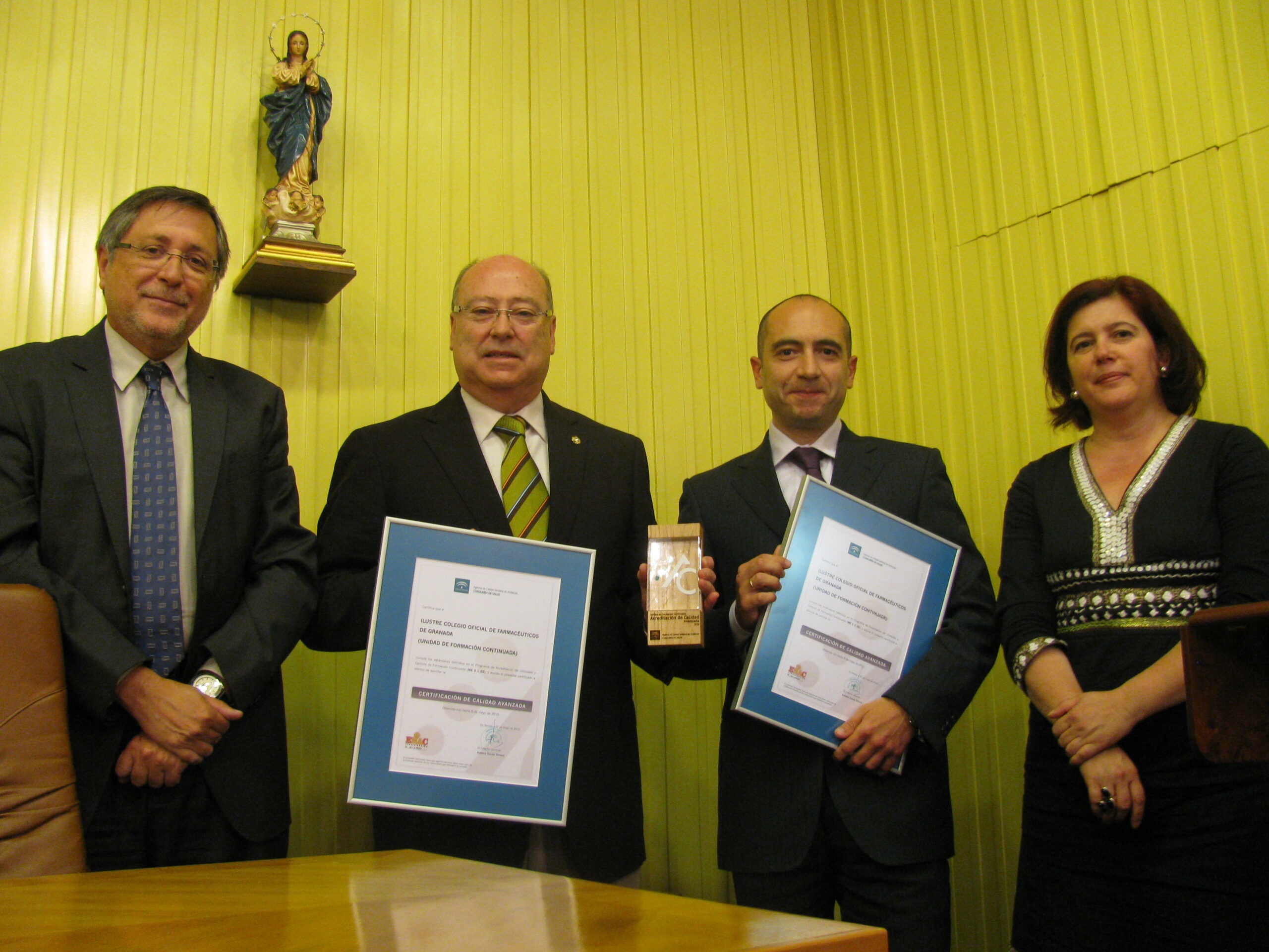 calidadEl pasado jueves se celebró en el salón de actos del Colegio de Farmacéuticos de Granada, el acto de entrega del distintivo y certificado de la acreditación de calidad a la unidad de formación continuada del Colegio Oficial de Farmacéuticos de Granada. La mesa fue presidida por la Delegada de la Conserjería de Salud Elvira Ramón, el Presidente del ente farmacéutico D. Manuel Fuentes y el Presidente de la Agencia Andaluza de Calidad Sanitaria, Antonio Torres