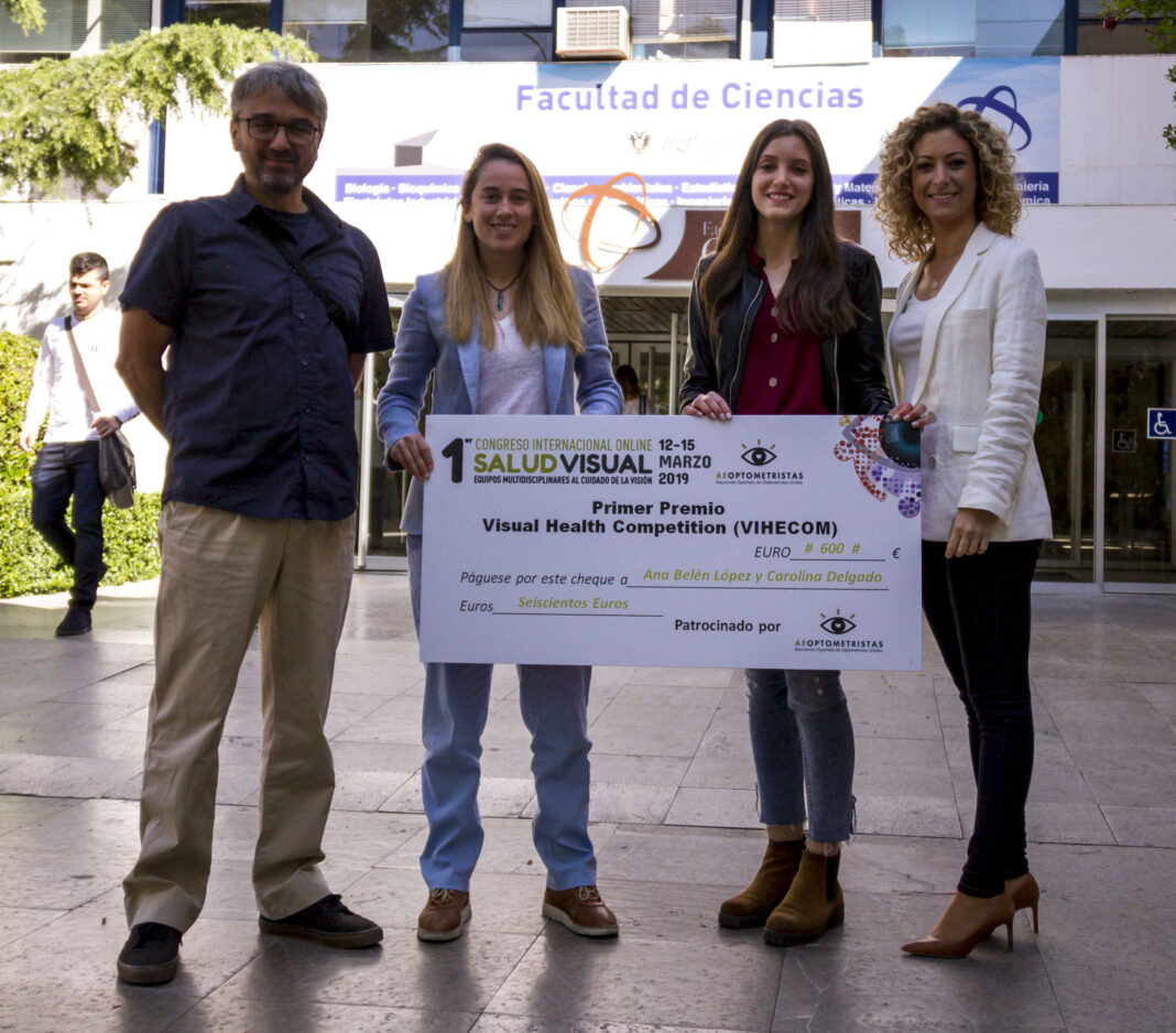 Dos estudiantes de la Universidad de Granada, Carolina Delgado, estudiante de Psicología, y Ana Belen López, del Grado en Óptica y Optometría han sido las ganadoras del Visual Health Competition (VIHECOM). Se trata del primer Congreso Internacional Online de Salud Visual, VIHECOM, una competición multidisciplinar entre cuatro universidades españolas: Universidad Complutense de Madrid (UCM), Universidad de Granada (UGR), Universidad de Murcia (UMU) y Universidad de Valencia (UV). En cada una de ellas, se han seleccionado a los mejores estudiantes de Educación, el grado en Óptica y Optometría (que se imparte en la Facultad de Ciencias de la UGR) y Psicología.