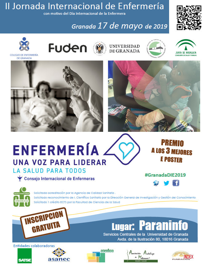 Esta Jornada está dirigida a profesionales de Enfermería, EIR, estudiantes de Grado y otros profesionales sanitarios. Ha sido organizada por el Colegio Oficial de Enfermería de Granada, la Fundación para el Desarrollo de la Enfermería (FUDEN), la Facultad de Ciencias de la Salud de la UGR y la Consejería de Salud de la Junta de Andalucía.