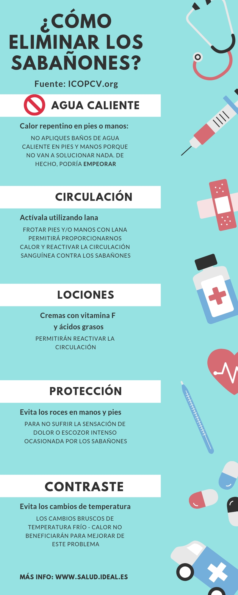 En caso de que tu piel quede expuesta al frío, vuelve a calentarla de forma progresiva ya que si lo haces de forma repentina los sabañones pueden llegar a empeorar. Si ya los padeces, debes actuar de una forma concreta para evitar problemas mayores como no aplicando calor ni poner los pies en baños calientes; frotar los pies o manos con lana para activar la circulación sanguínea, aplicar cremas con vitamina F y ácidos grasos activadoras de la circulación y proteger los pies o las manos de los roces y evitar contrastes de frío – calor para evitar el dolor por los sabañones. Un problema sumamente común que llega a resultar hartamente molesto. En caso de que perdure la dolencia, consulte con un especialista.